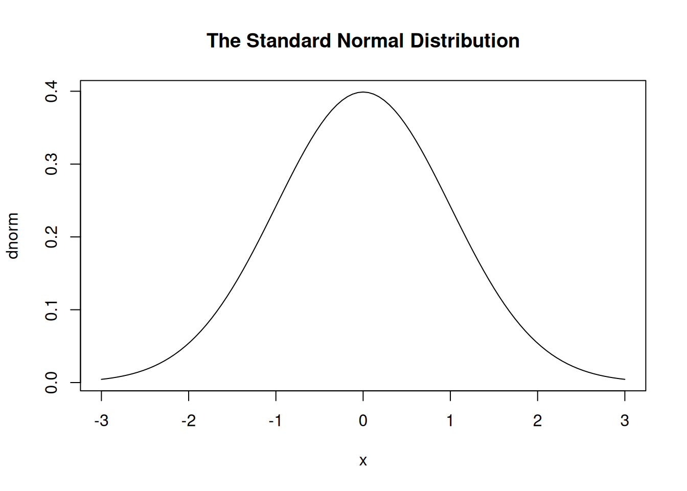 plot(dnorm, -3, 3, main="The Standard Normal Distribution")